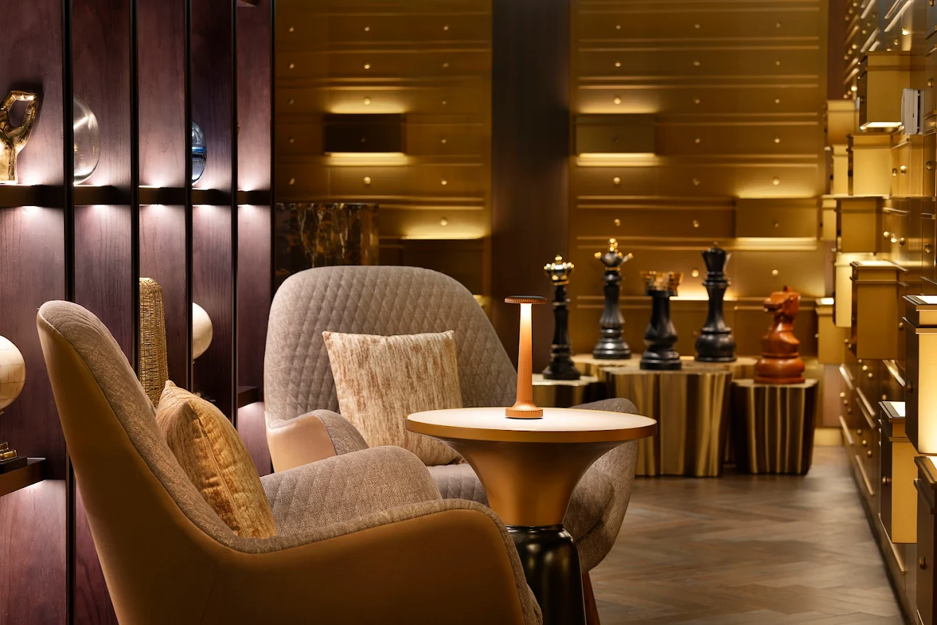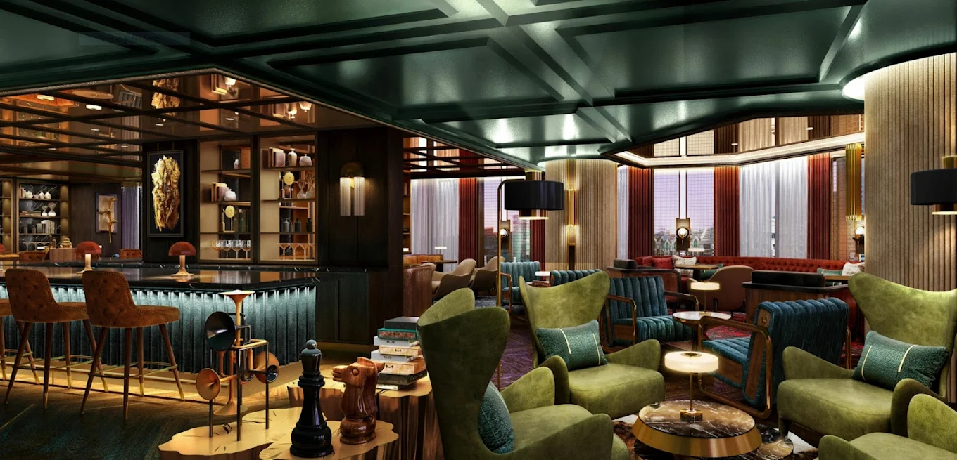 Trade Room Bahrain has an inviting and opulent ambience, with plush lounge chairs and contemporary design elements that create a perfect setting for networking and relaxation.